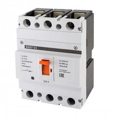 Автоматический выключатель ВА87-35 3п 200А 25кА обеспечит надежную защиту вашей электросети от перегрузок и коротких замыканий. Благодаря номинальному току 200А и высокой отключающей способности (25кА), он идеально подходит для мощных нагрузок. Установка проста – крепление на стандартную DIN-рейку. Гарантия безопасности вашего электрооборудования!