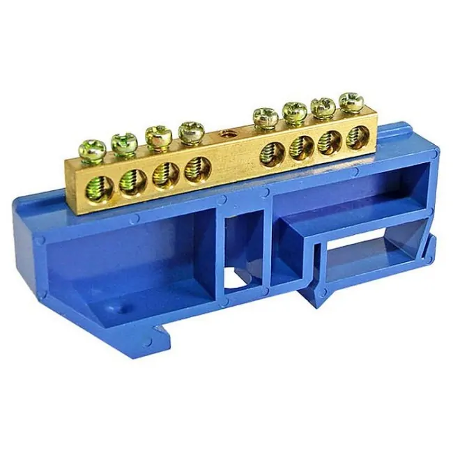 Шина N-PE 8 предназначена для эффективного распределения заземления и нуля в электрощитах. Изготовленная из латуни, она обеспечивает высокую проводимость тока и надежность контактов. Синий изолятор соответствует международным стандартам цветовой маркировки (DIN), что облегчает монтаж и эксплуатацию. Восьмигрупповое исполнение позволяет удобно подключить множество устройств к единой шине, упрощая компоновку щитового оборудования. Подходит для использования на DIN-рейке.
