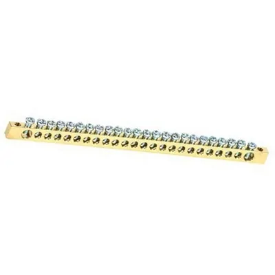 Нулевая шина 24/2 6х9 мм из латуни обеспечивает надежное распределение нуля в электрощите. Открытого типа монтаж упрощает подключение проводов благодаря креплению по краям. Два ряда по 12 выводов позволяют удобно организовать разводку электросети. Продукт профессионального уровня — выбор тех, кто ценит безопасность и порядок в электротехнике.