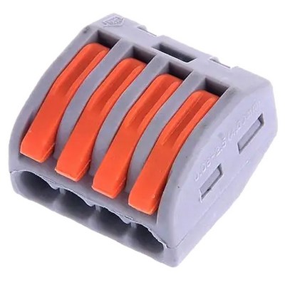 Клеммная колодка с четырьмя зажимами предназначена для надежного соединения проводников номинальным сечением от 0,08 до 2,5 мм². Идеально подходит для распределительных коробок, электрощитов и других электротехнических устройств. Подходит для использования в жилых помещениях, коммерческих объектах и промышленных зданиях.